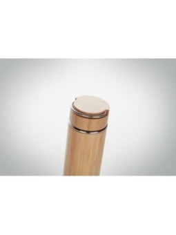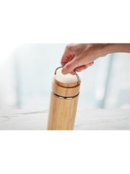 Bouteille publicitaire à vide isolante à double paroi en acier inoxydable et bambou avec infuseur à thé supplémentaire à l'intérieur. Le tarif "à partir de" est valable pour des quantités supérieures à 5000 pièces. Minimum de commande : 100 pièces