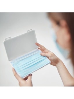 Set de 4 masques de protection jetables avec leur étui. Parfait pour les transports en communs et les magasins dont le port du masque est obligatoire. Minimum de commande : 50 pièces