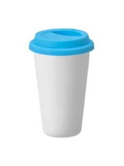 Tasse de voyage publicitaire en céramique à double paroi de 275 ml avec couvercle en silicone et motif flocon de neige. Le tarif "à partir de" est valable pour des quantités supérieures à 5000 pièces. Minimum de commande : 50 pièces