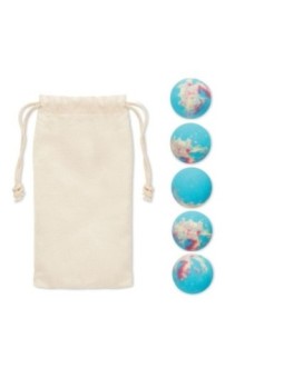 5 bombes de bain senteur marine. Pochette publicitaire. Le tarif "à partir de" est valable pour des quantités supérieures à 5000 pièces. Minimum de commande : 50 pièces