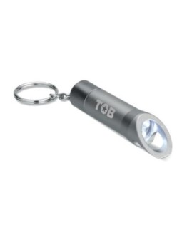 Lampe torche publicitaire LED porte-clés en métal avec décapsuleur ! Le tarif "à partir de" est valable pour des quantités supérieures à 5000 pièces. Minimum de commande : 250 pièces Caractéristiques clés : Dimensions : Ø1,5 x 7 cm Poids : 24g