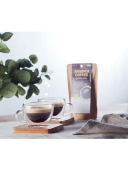 Ensemble de 2 verres publicictaires à expresso à double paroi avec soucoupe en bambou. Présenté dans une boîte en papier kraft. Capacité 90 ml. Le tarif "à partir de" est valable pour des quantités supérieures à 5000 pièces. Minimum de commande : 50 pièces