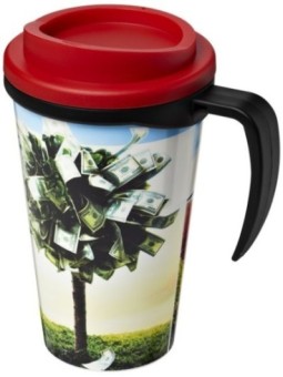 Mug isolant publicitaire avec poignée d'une contenance de 350 ml. Mug isotherme à personnaliser intégralement. Le tarif "à partir de" est valable pour des quantités supérieures à 5000 pièces. Minimum de commande : 100 pièces