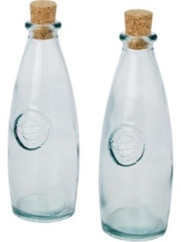 Ensemble de deux récipients promotionnel à huile et à vinaigre en verre recyclé. Le tarif "à partir de" est valable pour des quantités supérieures à 5000 pièces. Minimum de commande : 25 pièces.