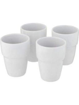 Ensemble de quatre mugs en céramique empilables livrés dans un coffret cadeau en carton recyclé. Le tarif "à partir de" est valable pour des quantités supérieures à 5000 pièces. Minimum de commande : 50 pièces