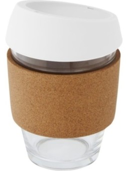 Gobelet de 360 ml en verre borosilicate avec grip en liège et couvercle en silicone. Le tarif "à partir de" est valable pour des quantités supérieures à 5000 pièces. Minimum de commande : 100 pièces