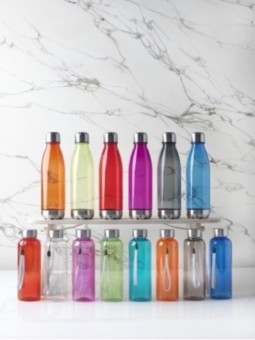 Bouteille publicitaire en plastique avec paroi simple et bouchon à visser. Le tarif "à partir de" est valable pour des quantités supérieures à 5000 pièces. Minimum de commande : 50 pièces