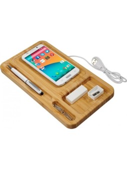 Organisateur de bureau avec chargeur personnalisable. L'organiseur de bureau aide à garder les choses en ordre, ainsi qu'à charger les téléphones sans câble. Bambou veritable, fabriqué en Europe. Le tarif "à partir de" est valable pour des quantités supérieures à 5000 pièces. Minimum de...