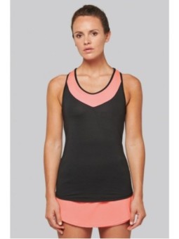 Débardeur de Padel personnalisé en polyester et en élasthanne. Le tarif "à partir de" est valable pour des quantités supérieures à 5000 pièces. Minimum de commande : 100 pièces.