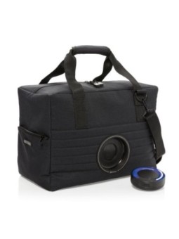 Sac insotherme personnalisé avec enceinte pour écouter de la musique tout en conservant vos aliments au frais. Le tarif "à partir de" est valable pour des quantités supérieures à 5000 pièces Minimum de commande : 10 pièces