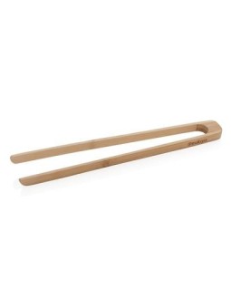 Pince de service publicitaire en bambou. Idéale pour soulever et servir les aliments. Le tarif "à partir de" est valable pour des quantités supérieures à 5000 pièces. Minimum de commande : 250 pièces.