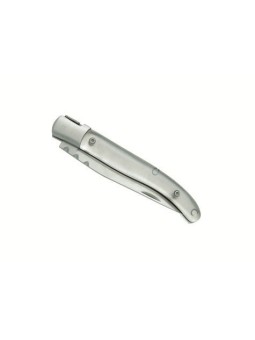 Couteau de poche publicitaire avec lame en acier inoxydable et manche en frêne exotique. Le tarif "à partir de" est valable pour des quantités supérieures à 5000 pièces. Minimum de commande : 60 pièces