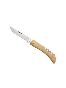 Couteau pliable personnalisé en bois d'Olivier avec tire bouchon intégré. Le tarif "à partir de" est valable pour des quantités supérieures à 5000 pièces. Minimum de commande : 50 pièces.