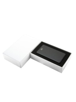 Batterie de secours personnalisable universelle (Powerbank) en plastique ABS noir. Le tarif "à partir de" est valable pour des quantités supérieures à 5000 pièces. Minimum de commande : 50 pièces