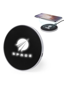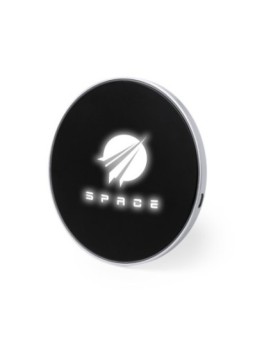 Chargeur sans fil circulaire personnalisable par gravure ou tampographie. En noir élégant avec la lumière intérieur de LED, ce produit donnera du peps à votre visibilité et notoriété. Le tarif « à partir de » est valable pour des quantités supérieures à 5000 pièces. Minimum de commande : 100...