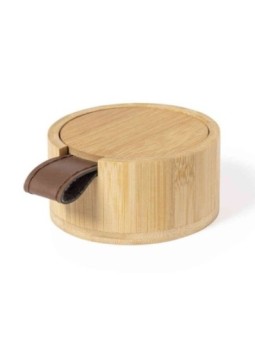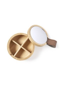 Boîte à bijoux personnalisable en bambou avec des compartiments. Le tarif "à partir de" est valable pour des quantités supérieures à 5000 pièces. Minimum de commande : 250 pièces.
