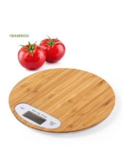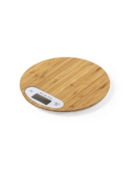 Balance de cuisine personnalisée forme ronde en bambou. Le tarif "à partir de" est valable pour des quantités supérieures à 5000 pièces. Minimum de commande : 250 pièces.