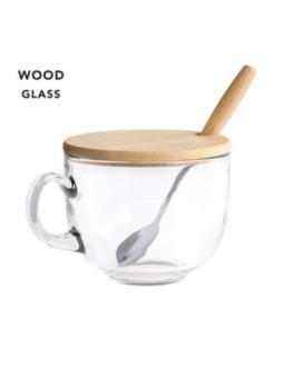 Tasse personnalisée avec couvercle en bambou. Le tarif "à partir de" est valable pour des quantités supérieures à 5000 pièces. Minimum de commande : 250 pièces.