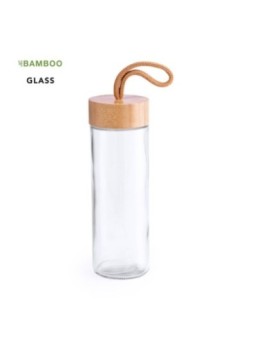 Gourde personnalisée de capacité 430 ml en verre et en bambou. Le tarif "à partir de" est valable pour des quantités supérieures à 5000 pièces. Minimum de commande : 250 pièces.