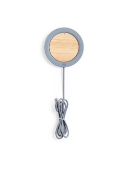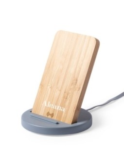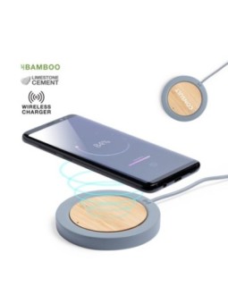 Chargeur personnalisé sans fil fabriqué en ciment calcaire et en bambou. Le tarif "à partir de" est valable pour des quantités supérieures à 5000 pièces. Minimum de commande : 250 pièces.