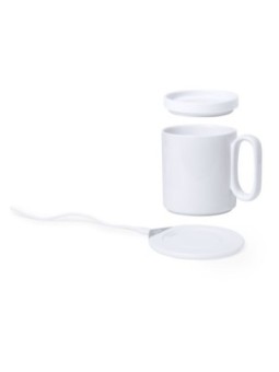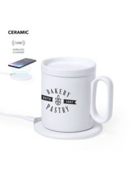 Chauffe-tasse personnalisé avec chargeur sans fil. Le tarif "à partir de" est valable pour des quantités supérieures à 5000 pièces. Minimum de commande : 250 pièces.