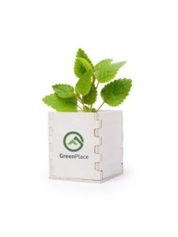 Pot de fleurs biodégradable promotionnel avec une boîte en bois. Le tarif "à partir de" est valable pour des quantités supérieures à 5000 pièces. Minimum de commande : 250 pièces.