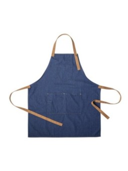 Tablier personnalisé en tissu denim 100% coton. Le tarif "à partir de" est valable pour des quantités supérieures à 5000 pièces. Minimum de commande : 250 pièces.