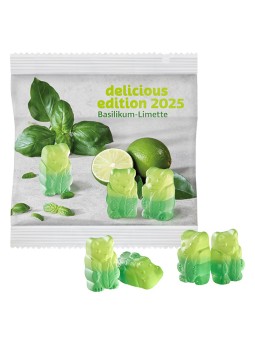 Bonbons fruités à la cerise Le tarif "à partir de" est valable pour des quantités supérieures à 1000 pièces. Le minimum de commande possible pour les bouteilles acidulées publicitaires est de 250 pièces. Caractéristiques clés : Dimensions : 100 x 75 g Contenance : 20g Conservation : 9 mois
