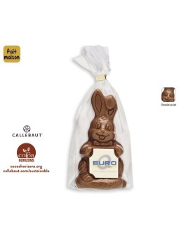 Lapin de pâques en chocolat publicitaire parfait en cette période de fête ! Le tarif "à partir de" du lapin de pâques en chocolat personnalisable est valable pour des quantités supérieures à 1000 pièces. Le minimum de commande possible pour ce lapin de pâques en chocolat personnalisé est de 150...