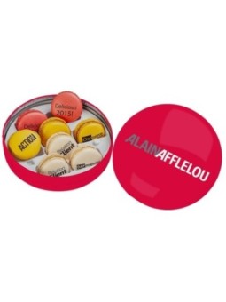 Coffret de macarons publicitaire présenté dans une boîte métallique en forme de macaron ! Le tarif "à partir de" du coffret de macarons publicitaire est valable pour des quantités supérieurs à 5000 pièces. Le minimum de commande possible pour ce coffret de macarons publicitaire est de 100...