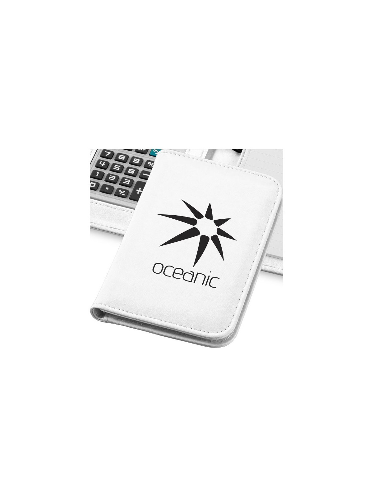 Carnet personnalisé 2 en 1 avec calculatrice intégrée. Calepin publicitaire petit format, idéal à transporter dans une poche.