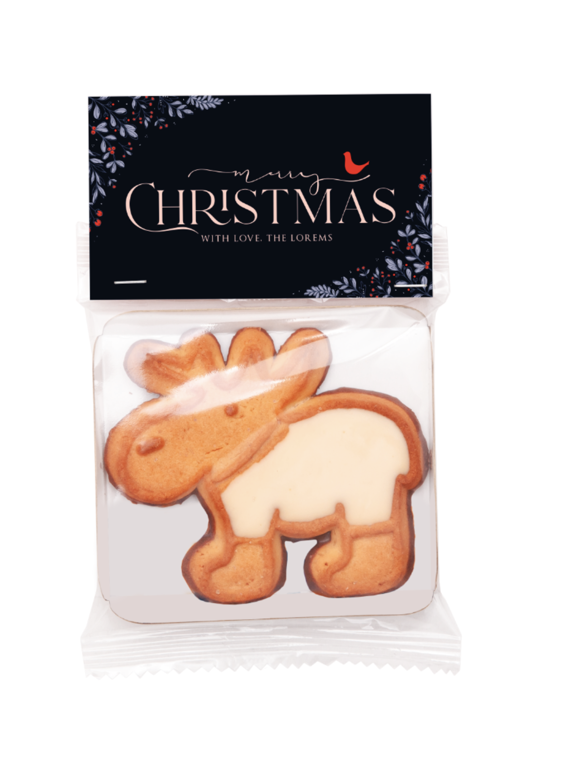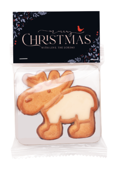 Le biscuit publicitaire en forme de renne personnalisable avec le logo ou le visuel de votre entreprise !