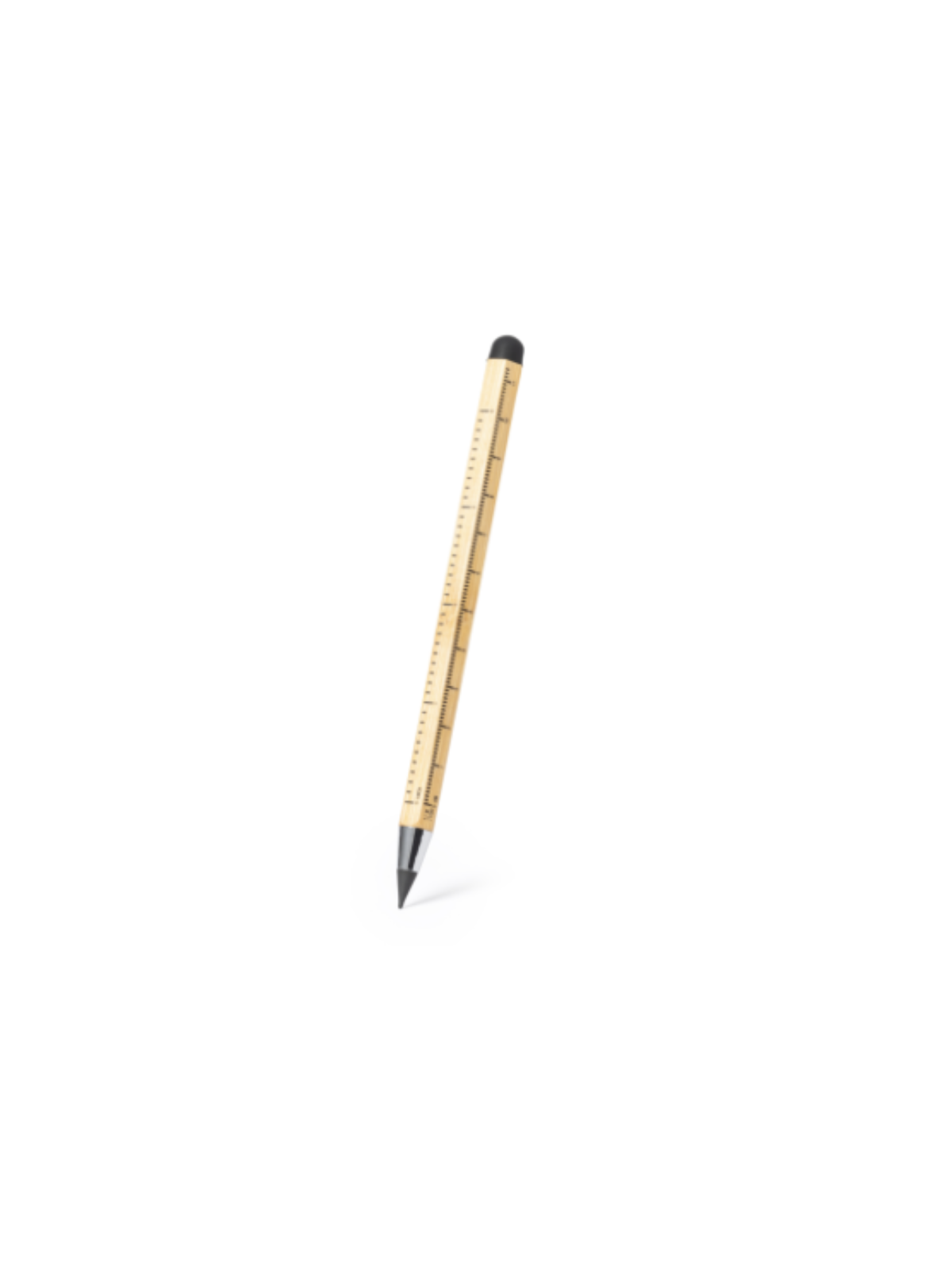 Crayon éternel multifonctions publicitaire avec le logo ou le visuel de votre entreprise. Entièrement fabriqué dans le respect de l'environnement, le crayon éternel multifonctions publicitaire a été conçu à partir de bambou naturel. Éco-responsable et durable, le crayon éternel multifonctions publicitaire dispose ainsi d'une fonction stylo, pointeur tactile et règle avec des mesures en centimètres et en pouces..