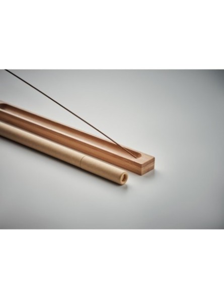 Set d'encens publicitaire avec support en bambou. Contient 10 bâtonnets parfumés au bois de santal.