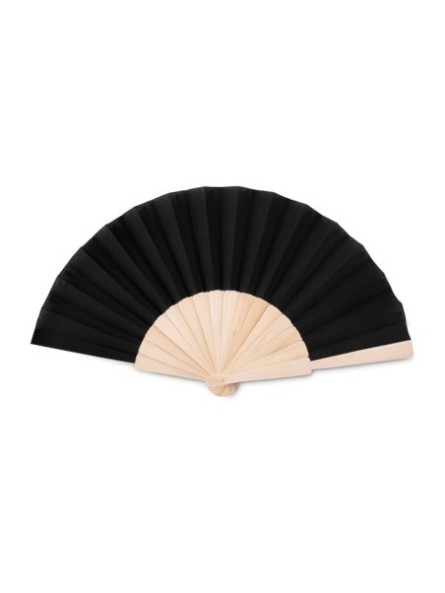 Éventail publicitaire manuel en bois et en polyester. Disponible dans différentes couleurs.