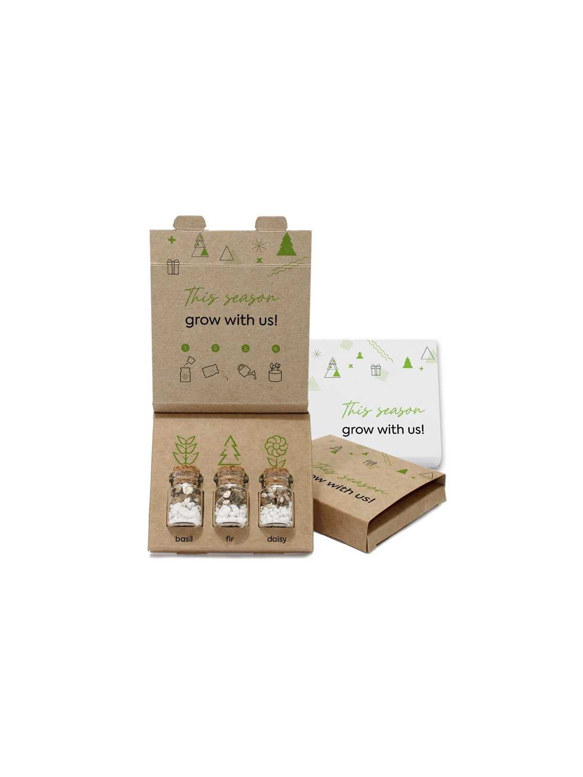 Ce bouquet en flacon, fabriqué en Europe, est une alternative raffinée et écologique aux cadeaux traditionnels. Présenté dans un élégant étui en papier écologique ou kraft, ce pack de trois flacons en verre scellés contient des graines soigneusement sélectionnées accompagnées d’additifs naturels favorisant leur croissance. L’emballage, imprimé en couleur recto verso, inclut des instructions claires pour une plantation réussie.
