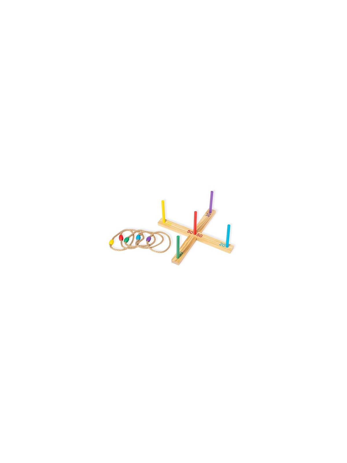 Testez votre précision avec ce jeu de tir en bois, aussi amusant qu’élégant. Le principe est simple : faites passer les cerceaux autour des bâtons de la même couleur pour marquer des points – chaque couleur correspond à un score différent.