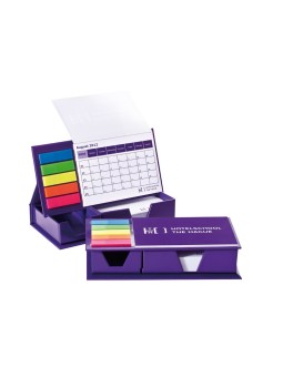 Ce calendrier spiralé intégré à une boîte rigide allie fonctionnalité et personnalisation haut de gamme. Conçu pour rester à portée de main sur un bureau, il comprend un bloc-notes, un espace pour cartes et un calendrier bien visible, le tout dans un coffret élégant à couverture rigide.