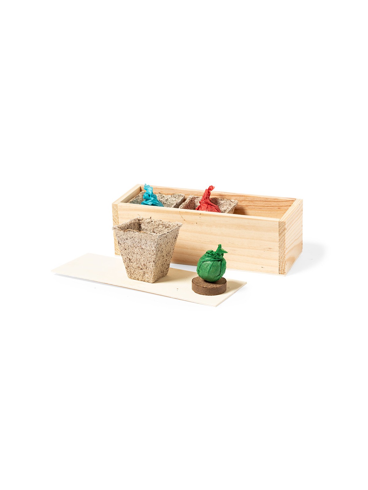 Offrez un cadeau d’entreprise qui respire la nature avec le kit de jardin publicitaire en bois, composé de graines de coriandre, de persil et de basilic. Présenté dans un élégant coffret éco-design finition kraft, ce goodies végétal associe authenticité, durabilité et esthétisme, tout en véhiculant une image de marque verte et responsable.