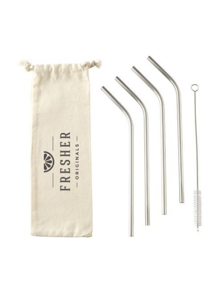 Set de pailles réutilisables publicitaire conçu en acier inoxydable. Une alternative écologique idéale pour remplacer les pailles en plastique.