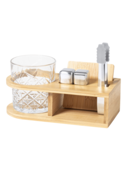 Set à whisky et support de bureau publicitaire écologique en bambou.