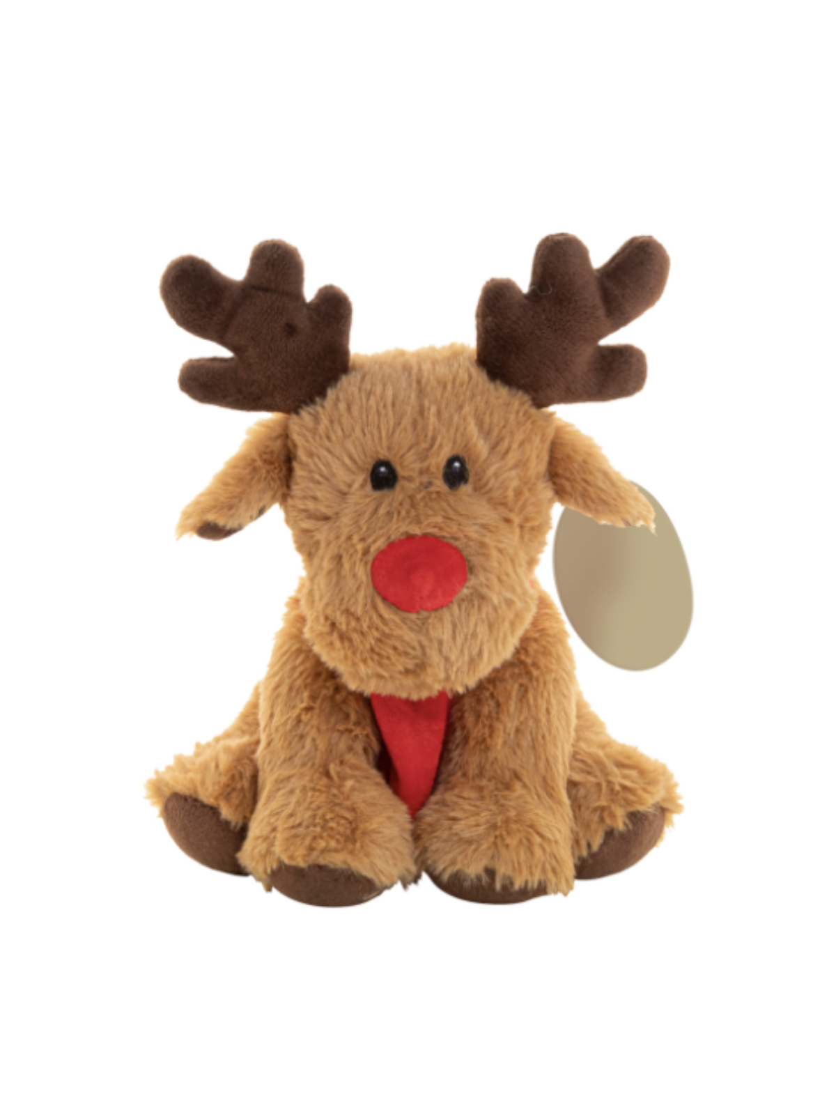 Peluche renne publicitaire personnalisable en Polyester PET recyclé avec étiquette imprimable sur son oreille !