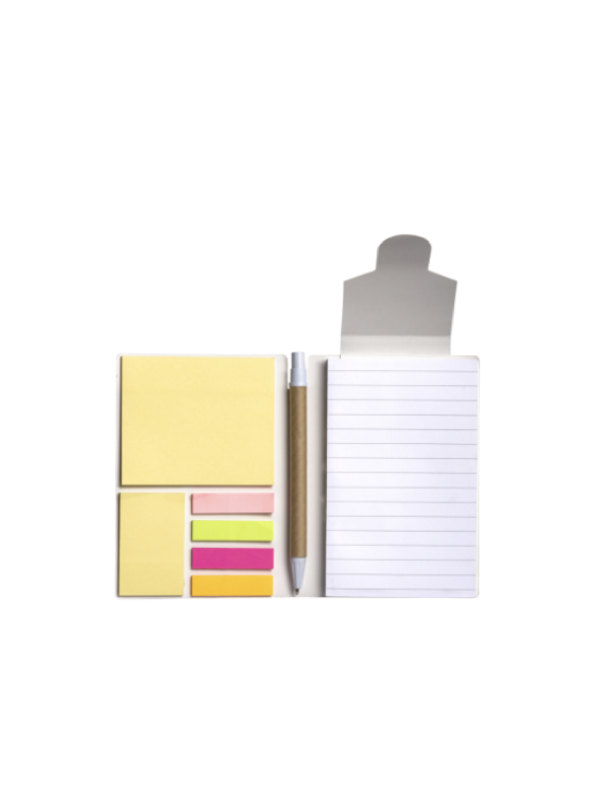 Découvrez notre bloc notes à personnaliser avec le logo ou le visuel de votre entreprise. Fabriqué dans le respect de l'environnement. Tendance et coloré, il comporte un bloc de feuilles lignées, ainsi que des notes adhésives. Le stylo est également inclus !